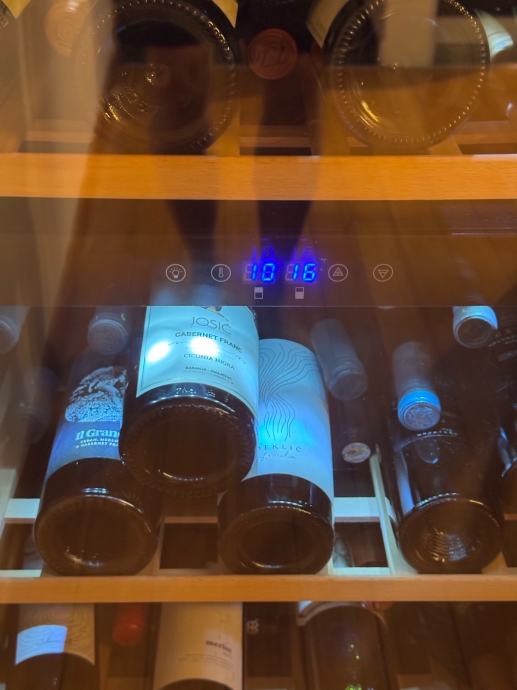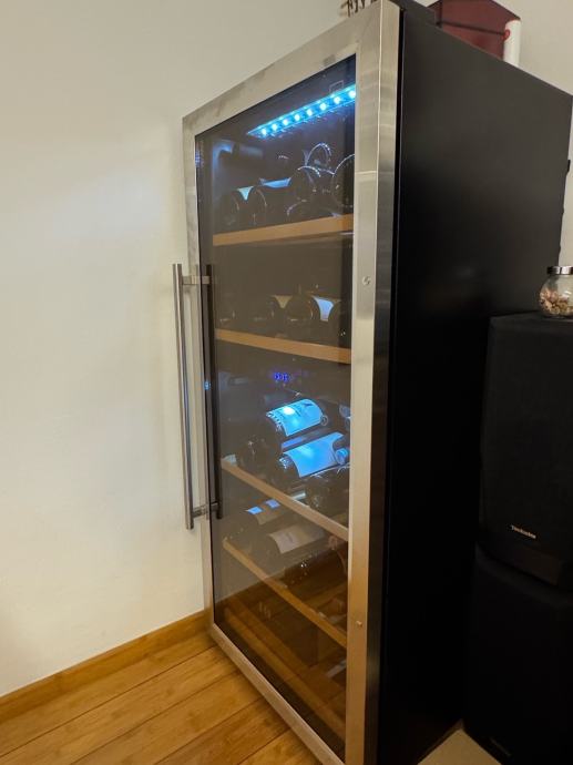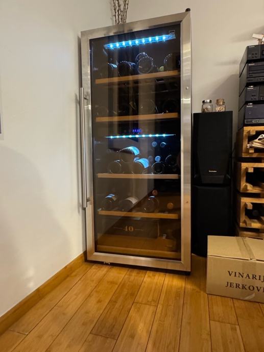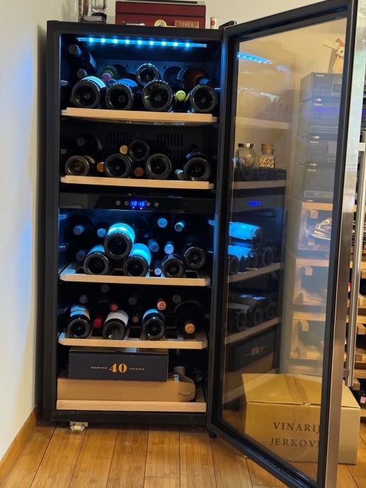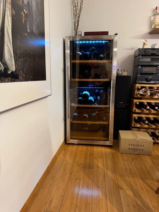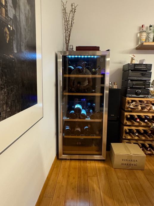 Prodajem dvozonski vinski hladnjak kapaciteta 42 boce na pet drvenih polica … stane i vise ak se lijepo složi. :)