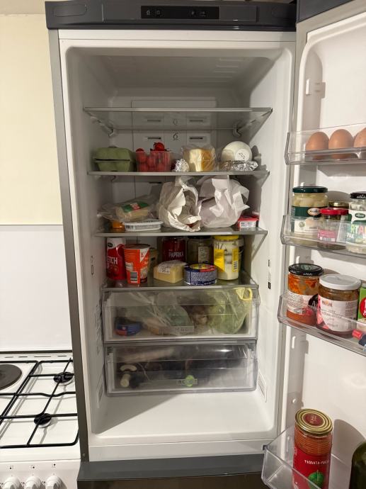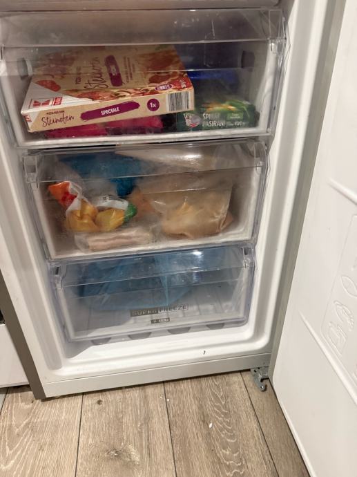 Srebrni frizider v200š0,60d0,64. Uščuvani frizider sa dvije ladice donja hladi na 0 a gornjasuper za očuvanje povrca svjeze ostaje i do 2 tj.