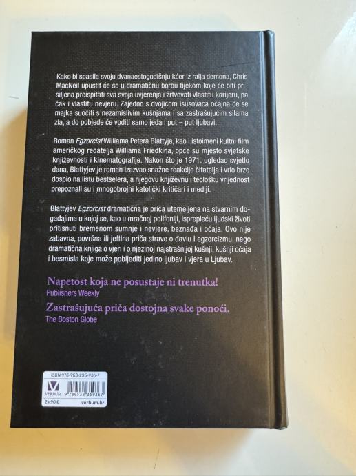 Prodajem Egzorcist, remek-djelo horor žanra, autora Williama Petera Blattyja. Knjiga je u odličnom stanju – potpuno nova, nečitana, na hrvatskom jeziku, s tvrdim uvezom. Izdavač: Verbum.