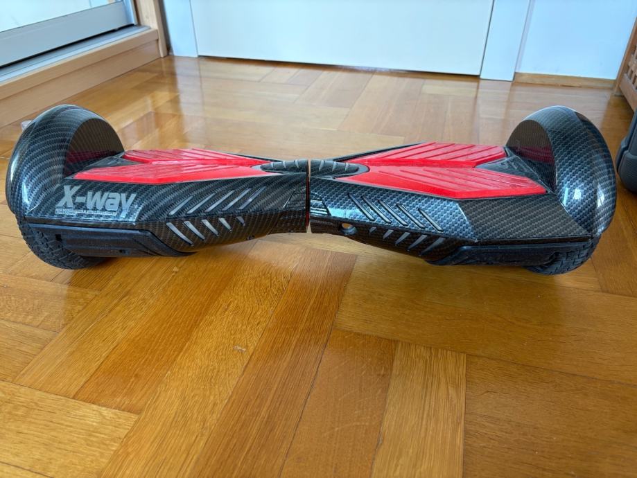 Prodajem hoverboard HobbyTown X-Way GL-650 Smart Board u crno-crvenoj boji s carbon look dizajnom. Uređaj je neispravan tj. baterija je prazna inace je ocuvan.