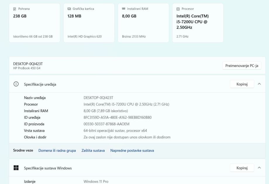 Prodajem rabljeni HP ProBook 450 G4 laptop u dobrom stanju s originalnim punjačem. Prijenosno računalo dolazi s punom tipkovnicom i svim potrebnim priključcima za svakodnevni rad. Idealan za posao ili studij po pristupačnoj cijeni.
