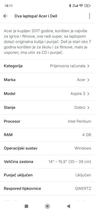 Prodajem dva laptopa zajedno a može i svaki zasebno, opis je u slikama