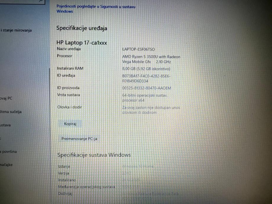 Prodajem HP 17-ca1025nm prijenosno računalo, kupljeno novo, prvi vlasnik.