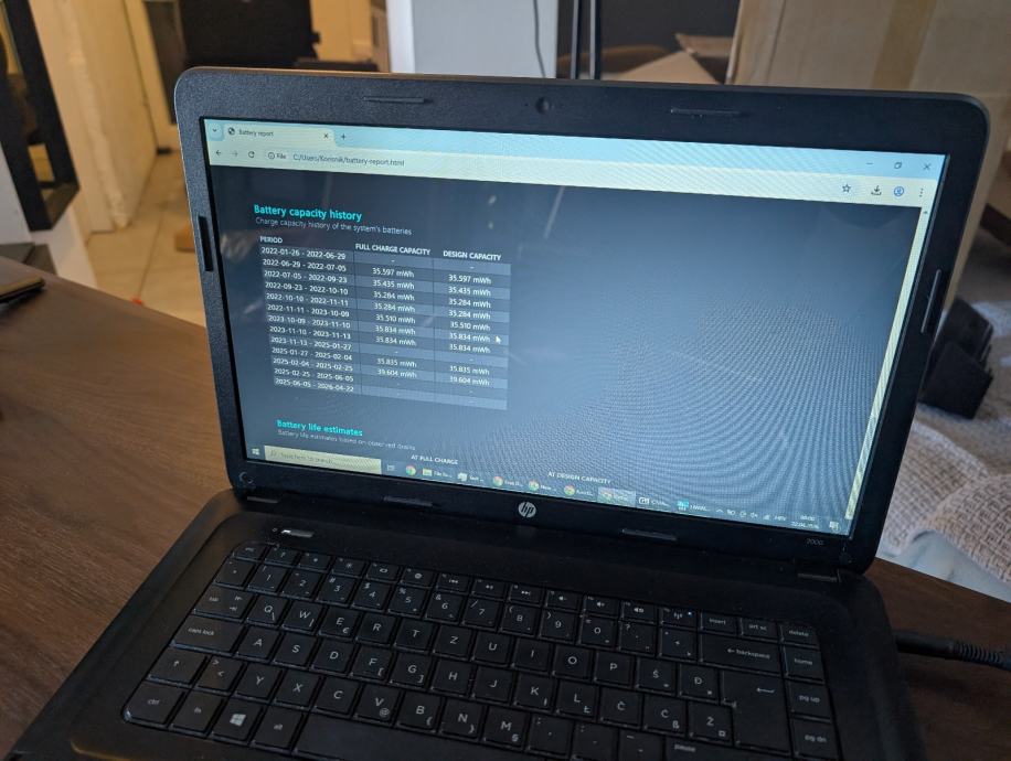 - Baterija: 35 od 39 Wh preostalog kapaciteta, ispravna, puni. Omogućuje rad od sat vremena bez punjača.