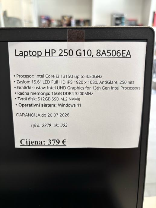 HP 250 G10, 8A505EA, i3 4.50Ghz/16GB RAM/512GB SSD/Garancija 07/2026