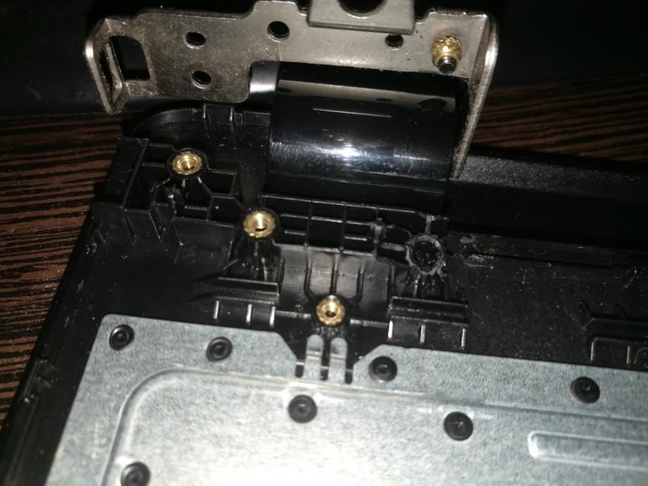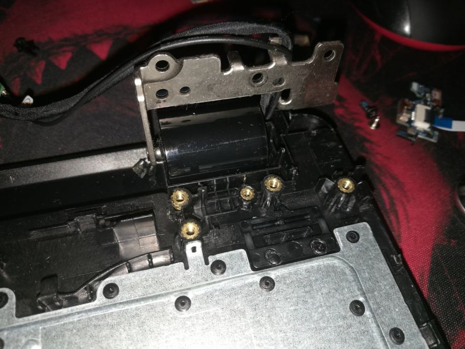 -najdonji dio kućišta (kadica) crna dosta ogrebana jer je laptop kliznuo po betonu ali funkcionalna i zdrava na nosačima, minimalne pukotine kod kopci za bateriju - 10 EUR
