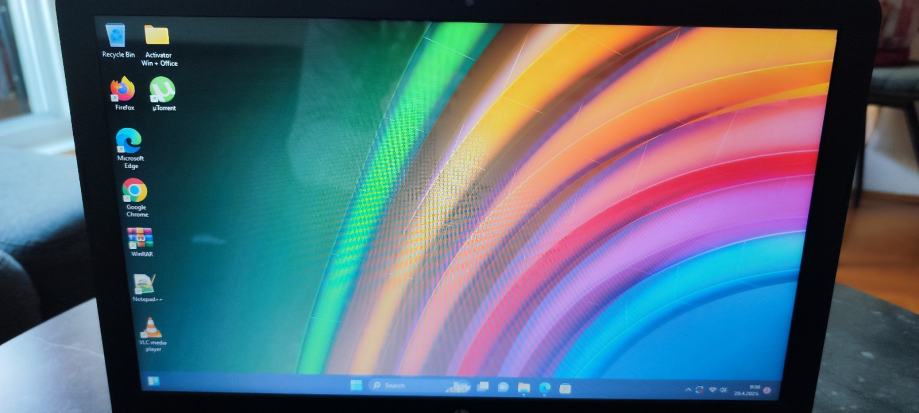 Stanje kućišta i tipkovnice vidljivo na slikama – sve tipke rade, ekran ispravan. Instalirani su najosnovniji programi (Chrome, Edge, VLC, WinRAR...).
