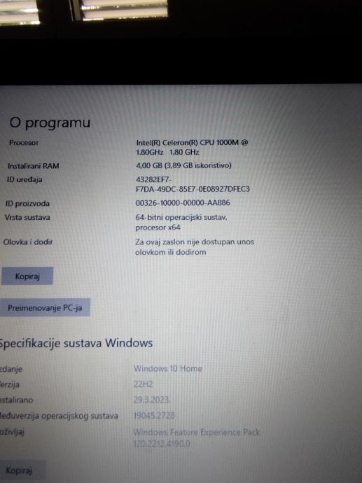 Prodajem laptop HP 250.Ekran 15,6 inča. HD 500gb. DVD/RW. Laptop je bez oštećenja i ogrebotina. Tamno sive boje. Kupio sam novi pa mi ovaj više ne treba. Na gornjem dijelu ekrana se pojavljivala bijela crta, ali nakon reseta Windowsa više se ne pojavljuje. Uz laptop ide i punjač, imam i račun ako nekom treba.
