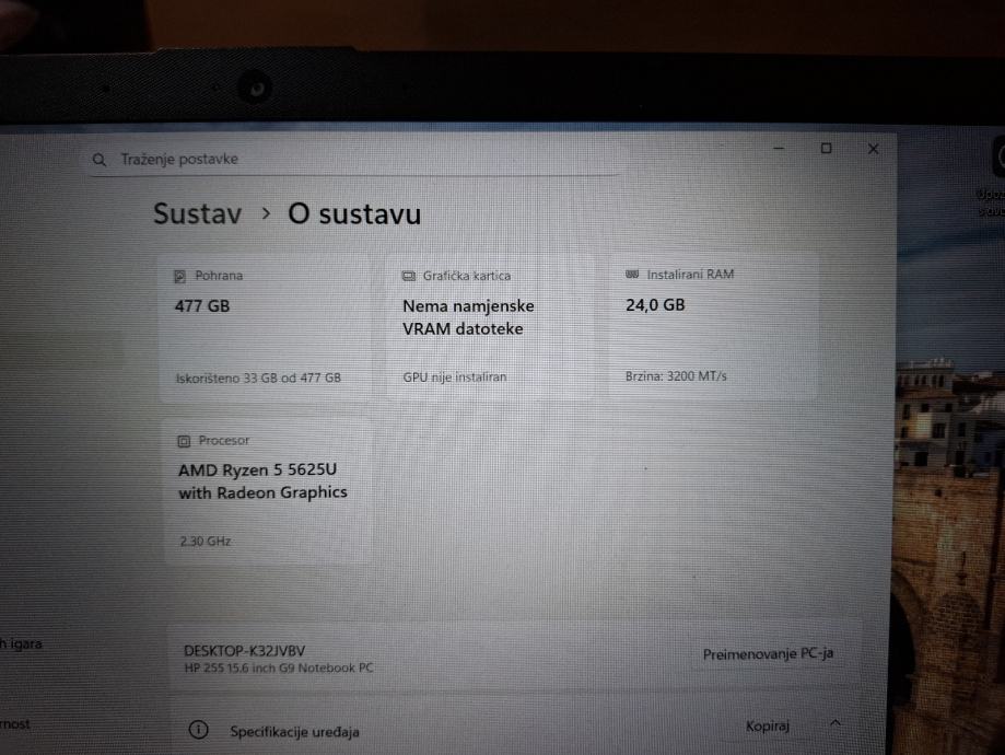 Instaliran windows 11, laptop je u tehnički urednom stanju, ima vidljive znakove korištenja ali je uglavnom dobro očuvan.