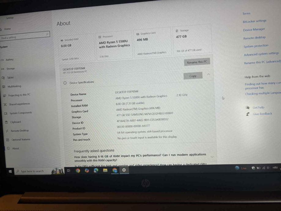 HP 255 G8 RYZEN 5 5500U 15.6 FHD 512GB SSD 8GB RAM