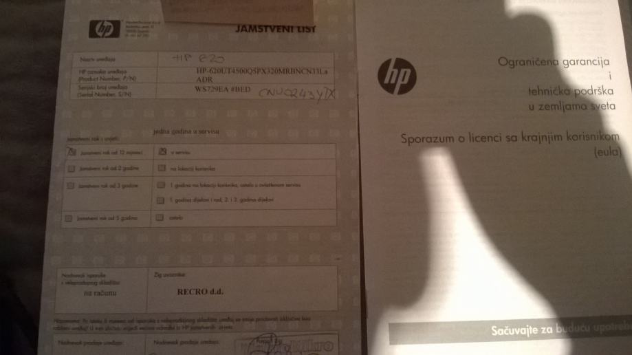 HP620, Procesor Dual Core 2.3 GHz Intel Pentium T4500, HDD 320GB, 3GB RAM-a, HDMI, kamera, WiFi, Windows 10, DVD RW DL lightscribe, punjač, sve jako uščuvano, uz laptop dolazi i sva njegova dokumentacija (račun, garancija, upute) kao što se vidi na slikama laptop je kao nov, cijena 1000kn. 0922021063