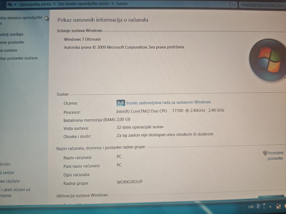 Prodajem laptop kupljen 2009 godine, korišten, u super stanju, baterija izdrži cca 1-1,5h ovisno što se radi. Windows 7 ultimate instaliran, Office također. Ekran dijagonale 15,4". Intel core duo cpu T7700, 2,4Ghz, 2 GB ram, 32 bit. Prije 4 god zamijenjen disk, stavljen SSD disk kapaciteta 256 GB. Dvd pogon.