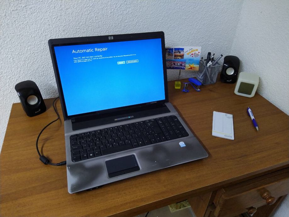 Nije radio par mjeseci i sad kod paljenja pokreče dijagnostiku, Najvjerojatnije bi trebala reinstalacija Windowsa. Trenutno je gore 8,1. Adapter ima ali nedostaje strujni kabel. Uz laptop ide i bežični miš.