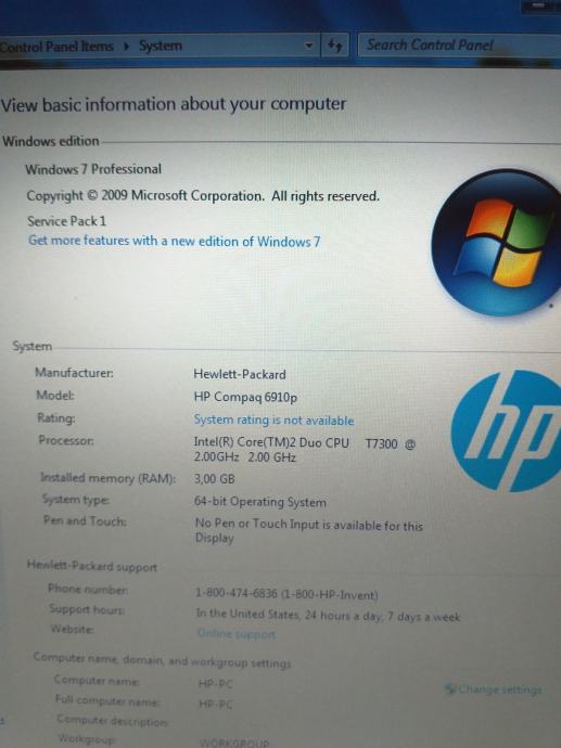 Prodajem ispravno HP prijenosno računalo model COMPAQ 6910p, sa 250 GB hard diskom, Intel® dual core procesorom T7300, 3 GB DDR2 RAM-a, jako dobrom baterijom i punjačem. Instaliran Windows 7. Ne radi nekoliko slova tipkovnice, pa uz laptop dajem vanjsku tipkovnicu, te je zato i cijena ovako niska.