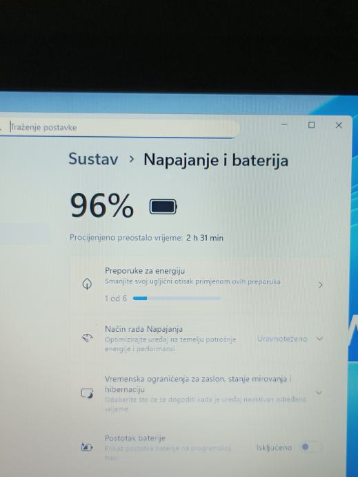 Ispravna baterija koja na testiranjima izdrži oko 1h na filmu na max razini osvjetljenja ekrana, a na tipkanju u wordu bi potrajala preko sat i pol u komadu!!