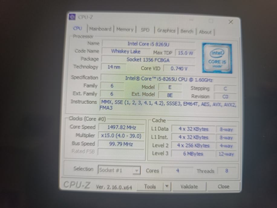Procesor: Intel Core i5-8265U (4 jezgre, 8 threadova, 1.6 GHz baza, do 3.9 GHz Turbo)
