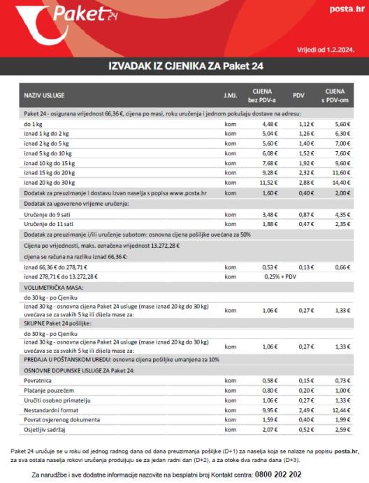 HP Paket24 - brza preporučena pošiljka s otkupninom, slijedeći radni dan do 20h - 7-10 €