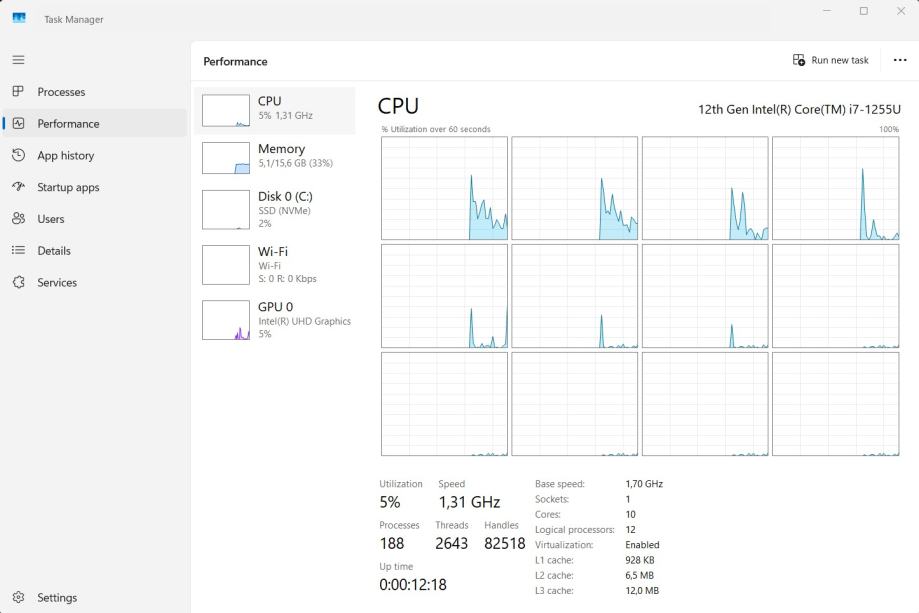 12th Generation Intel® Core™ i7-1255U Processor, 6 Cores, 12 Threads,