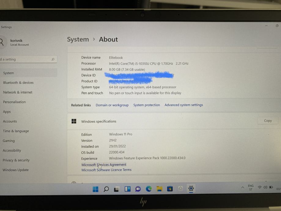 Prodajem HP Elitebook 830 G7.Ima malu pukotinu na kućištu.Ne utječe na rad laptopa.Pokreće ga intelov procesor i5 10-te generacije (i5 vpro 10310u), ima 8 GB DDR4 RAM i brzi m.2 nvme SSD od 256 GB.Ekran je 13.3 inčni FULL HD IPS. Ima LTE podršku tako da možete ubaciti SIM karticu i ne treba Vam WiFi. Tipkovnica je hrvatska sa dva stupnja osvjetljenja. Na njemu su instalirani originalni Windows 11 pro tako da je odmah spreman za korištenje. Tvornička garancija je bila do 03.12.2023.