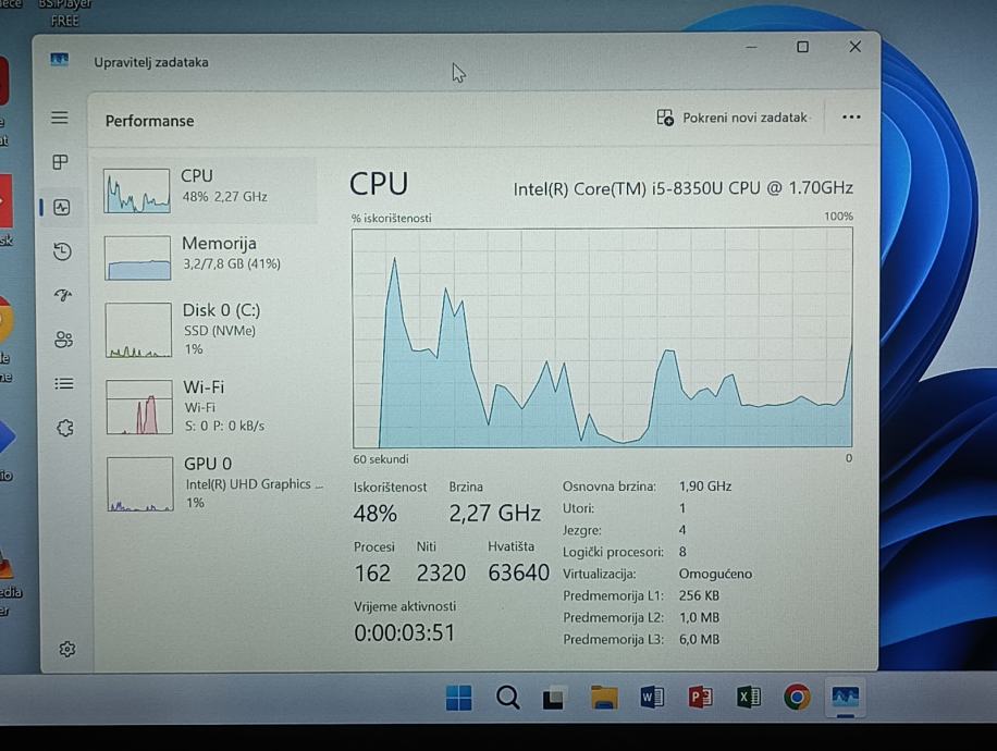 Grafička kartica: Intel UHD Graphics, Up to 3,9GB Shared memory