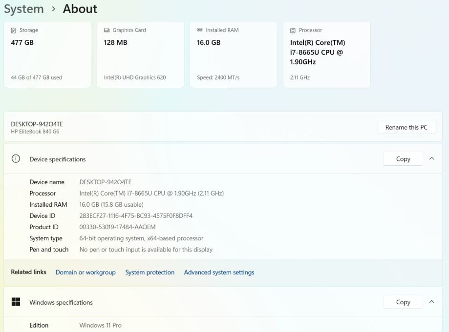 HP Elitebook 840 G6, i7-8665U, 512GB SSD, 16GB RAM, 14", LTE 4G, Win11