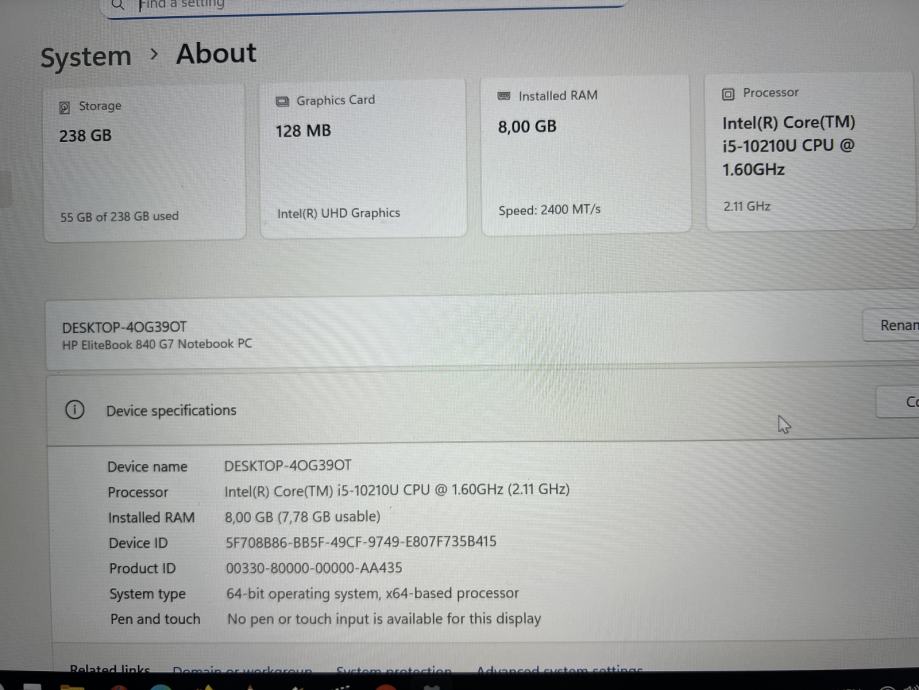 HP EliteBook 840 G7 / i5 10. gen/ 8GB RAM / 256GB SSD / Win11 Pro