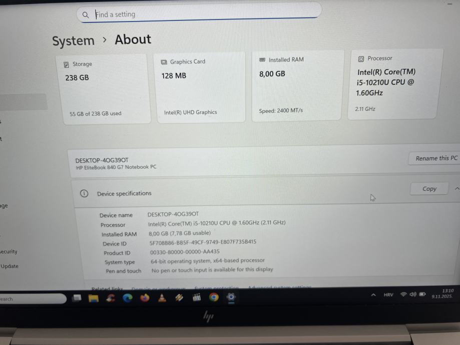 HP EliteBook 840 G7 / i5 10. gen/ 8GB RAM / 256GB SSD / Win11 Pro