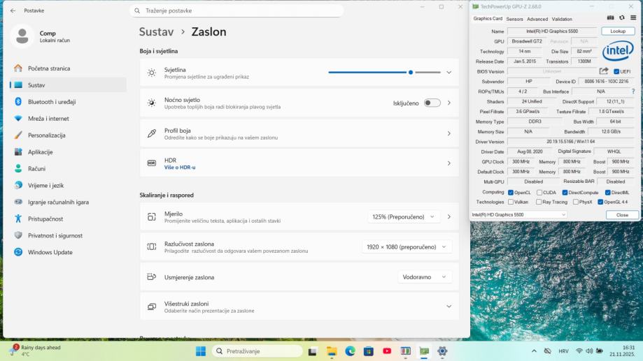 grafičkoj kartici. Dolazi s svježe instaliranim Windows 11