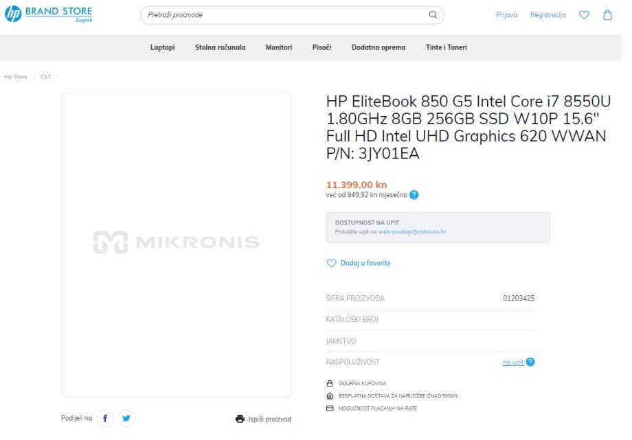 HP Elitebook 850 G5 15.6'',i7-8650U 512GB SSD 16GB DDR4 Win10pro Račun