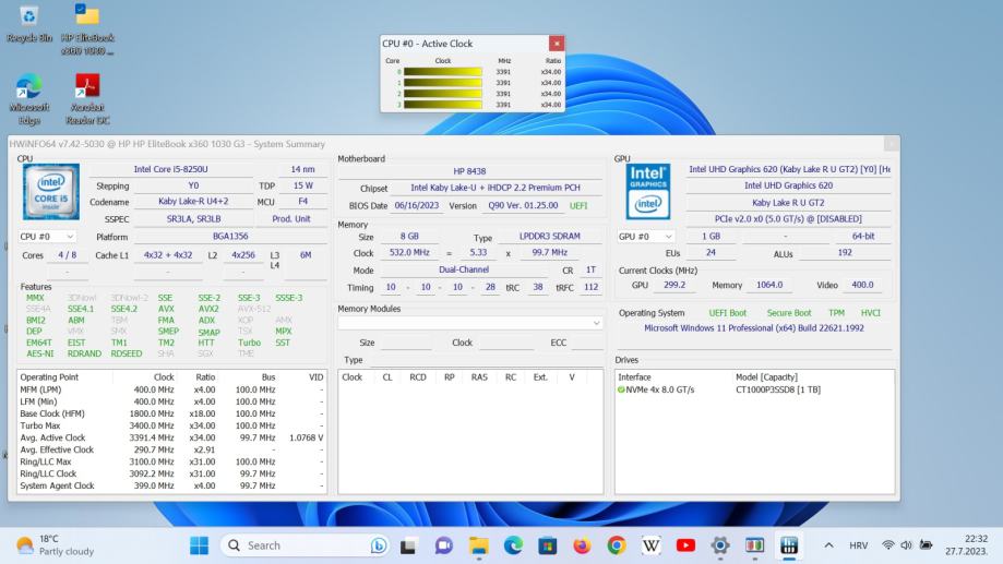 ⭐️HP EliteBook x360, i5–8350U, 8GB, 1000GB NVMe, FHD Touch, Sim card⭐️