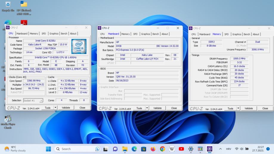 Core i5–8250U koji radi na frekvenciji od 1,6 GHz. Intel procesore