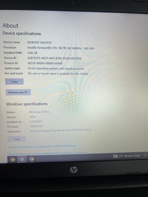 HP laptop 4 GB Windows 10 pro
