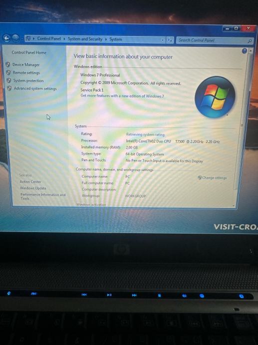 HP laptop T7500, 2,2ghz, 2gb ram, 250GB hard disk, 64bit system, Intel duo core, instalirani Windowsi 7 , excel, word, loša baterija ali radi na punjaču, solidan laptop za početnike školarce
