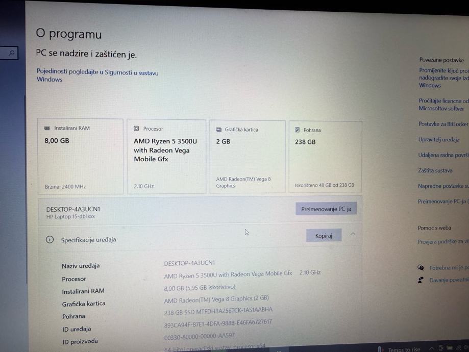 Prodajem HP laptop model 15-db1054nm u ispravnom i urednom stanju, bez ogrebotina i slično.