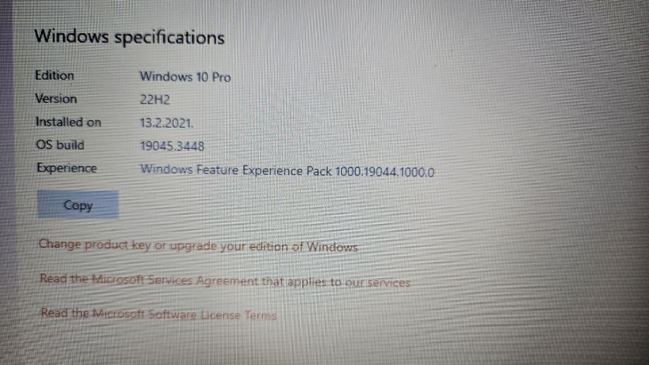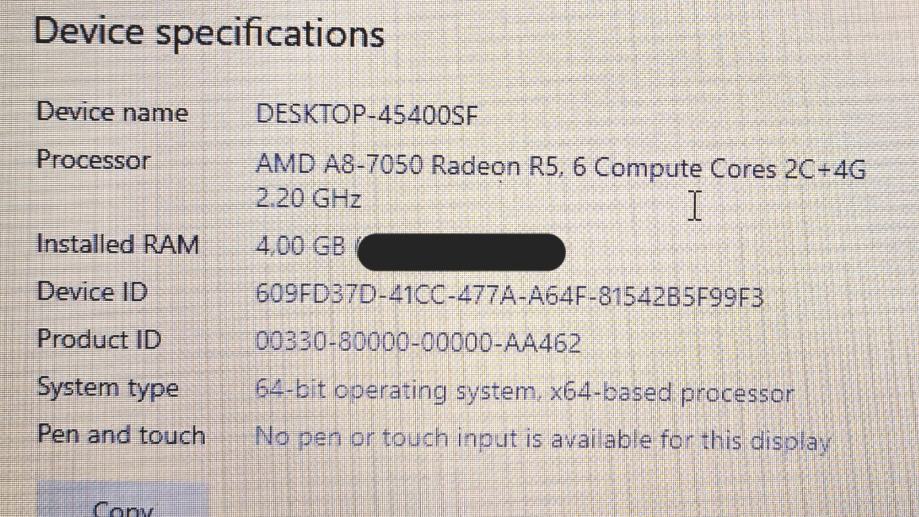 Laptop ima 4 GB RAM-a i instaliran Windows 10 Pro.