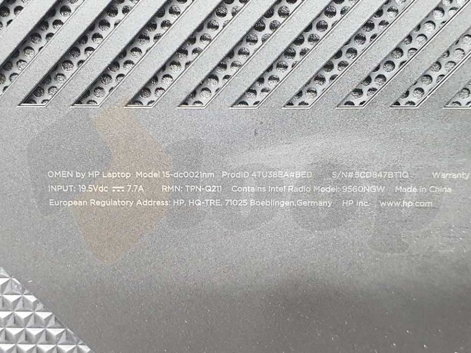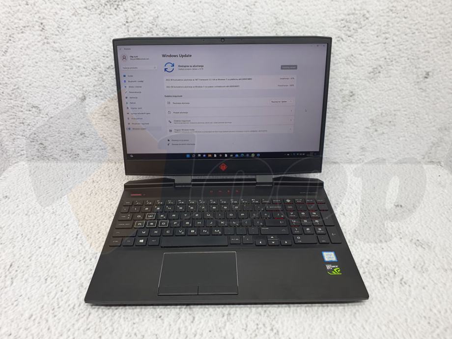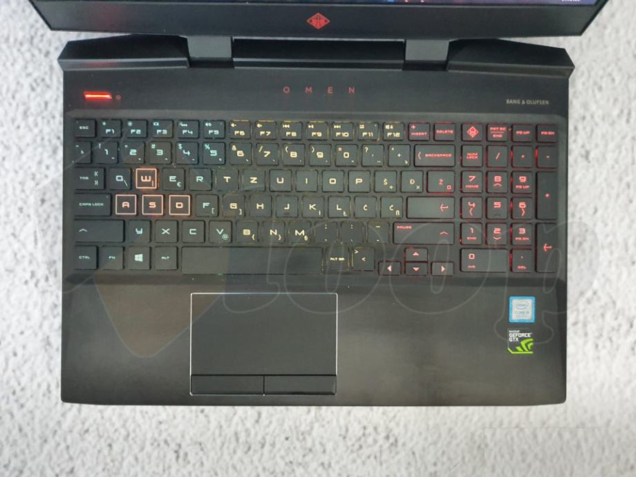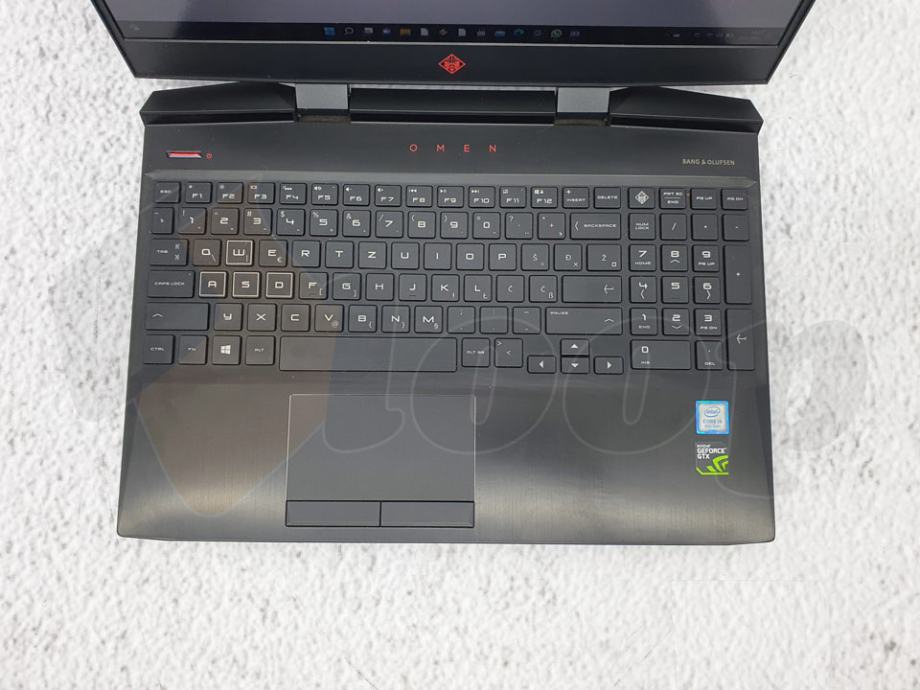 izvrsno očuvan gamerski laptop HP Omen model 15-dc0021nm, 256 GB SSD; 8GB DDR4 memorije; 15.6″ Full HD IPS display; Intel® Core™ i5-8300H (2.3 GHz base frequency, up to 4 GHz with Intel® Turbo Boost Technology, 6 MB cache, 4 cores) procesor; Nvidia GeForce GTX1050Ti (4GB GDDR5); Bang & Olufsen ozvučenje; HP Audio Boost; Dual speakers; 1 Thunderbolt™ 3, HDMI, 2x USB 2.0, 3x USB 3.0, RJ45, Audio in/out; osvjetljena gamerska tipkovnica.