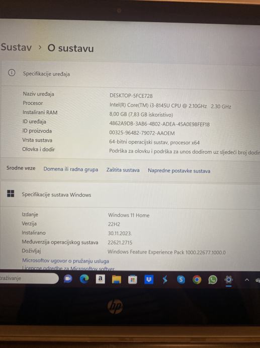 Prodajem HP Pavilion x360 Convertible prijenosno računalo, Desktop-5FCE728, 14 inča, 8GB, 2.30 GHz, touch screen, preklopni zaslon, Intel core i3 8th gen, Windows 11.