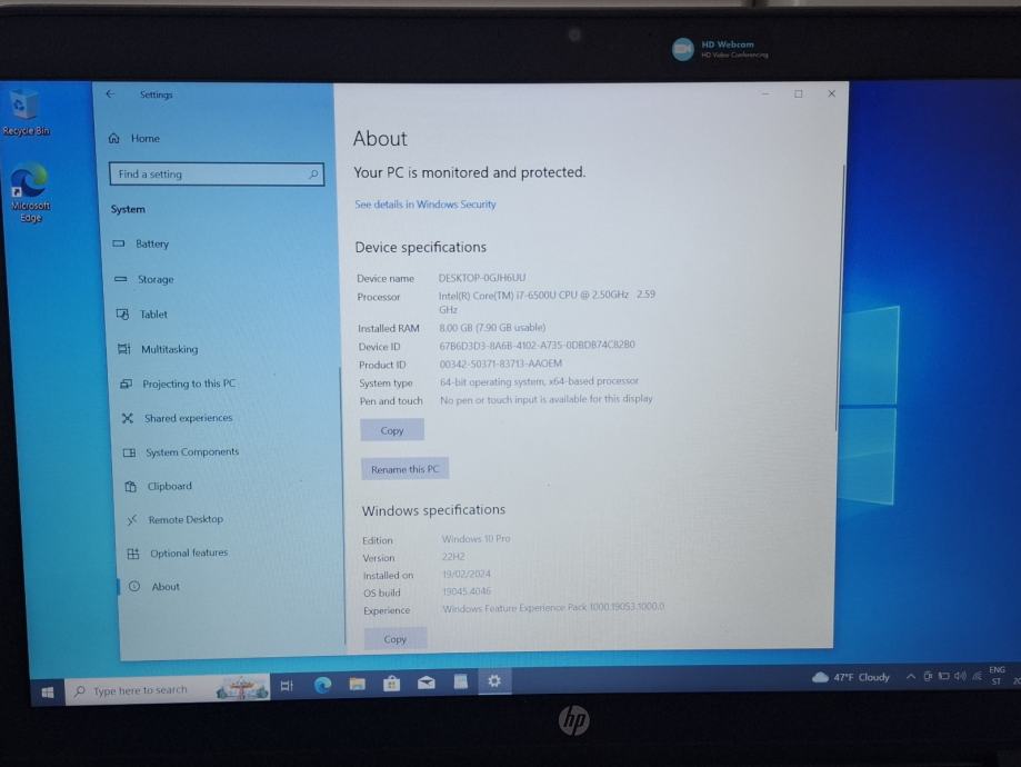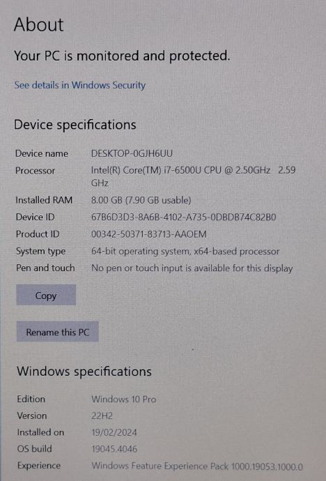 Prodajem očuvani laptop HP ProBook 450 G3. Računalo ima Windows 10 Pro operativni sustav, 8 GB RAM, 1920x1080 rezolucija ekrana. Idealan je za svakodnevnu upotrebu, kako za posao tako i za privatne potrebe. Specifikacije vidljive na slikama. Baterija je loša i ne drži bez punjača. Ako je to presudno, može se kupiti nova baterija za 30-ak eura.