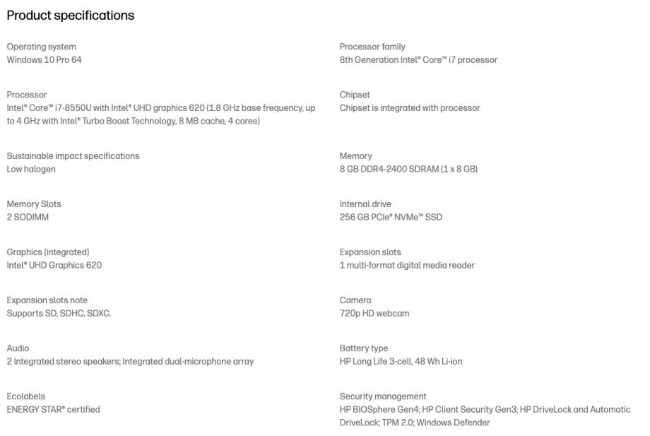 HP ProBook 450 G5 i7-8550U 16GB RAM