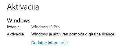 Stavljen novi SSD ( Patriot Burst) od 120GB i aktiviran Windows 10 Pro sa pripadajućim ključem.