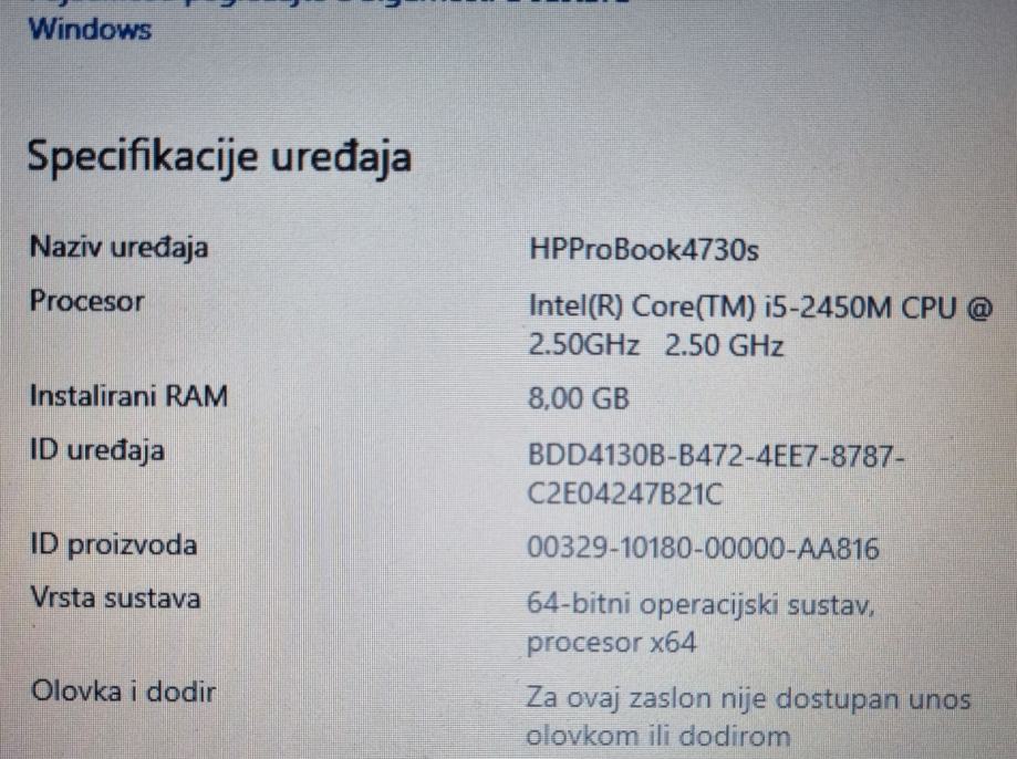 Prodajem poslovni prijenosnik HP ProBook 4730s, potpuno ispravan i spreman za rad.