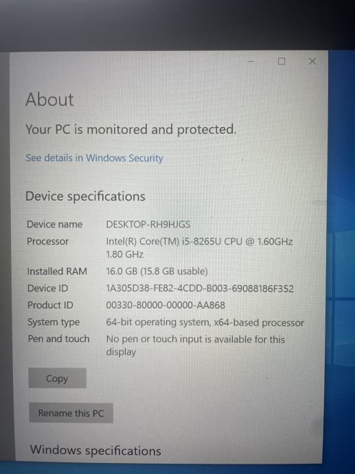Procesor: Intel Core i5 8265U 1.60GHz / 3.40GHz (6MB cache)