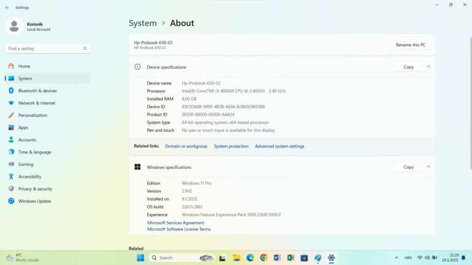 Instaliran Windows 11 operativni sustav, kao i Office 2019 paket alata (word, excel, powerpoint, itd). Aktivirane licence i za Windows 11 i za Office 2019.