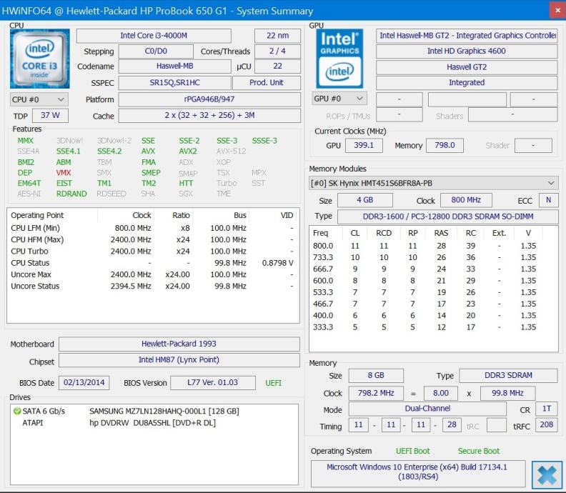 HP ProBook 650 G1 i3-4000M,8GB-DDR3,128GB SSD, Win11 pro x64, O2019