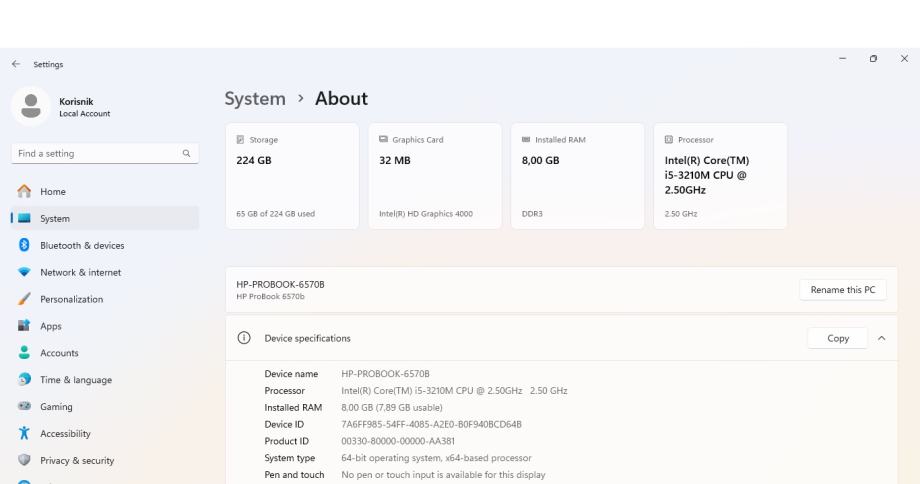 Laptop je uščuvan, ne gasi se u radu, ocjena 9/10 samo zbog par ogrebotina na kučištu laptopa (vidljivo na slikama). Aluminjisko kučište pojačano magnezijom, tako da laptop ne izgleda plastično. Na laptopu je instaliran WIN11 PRO x64 operativni sustav. Aktivirana licenca za win11 pro. Windowsi na engleskom sa podešenim regionalnim postavkama za Hrvatsku. Office 2019 pro sa hrvatskim language pack-om licenciran.