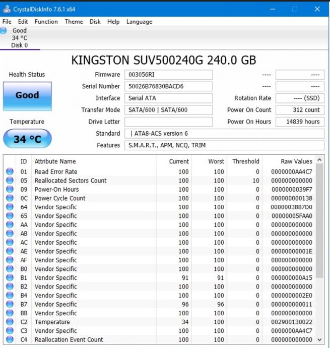 SSD testiran i nema loših sektora, a memorija ispravna također bez grešaka