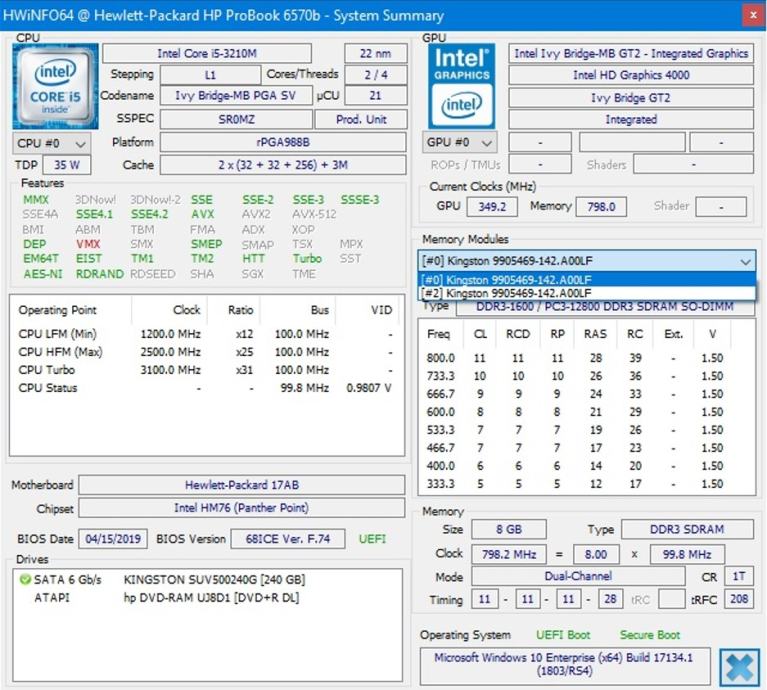 HP Probook 6570b, Intel i5, 8gb RAM, SSD 240gb, Win11, Office 2019