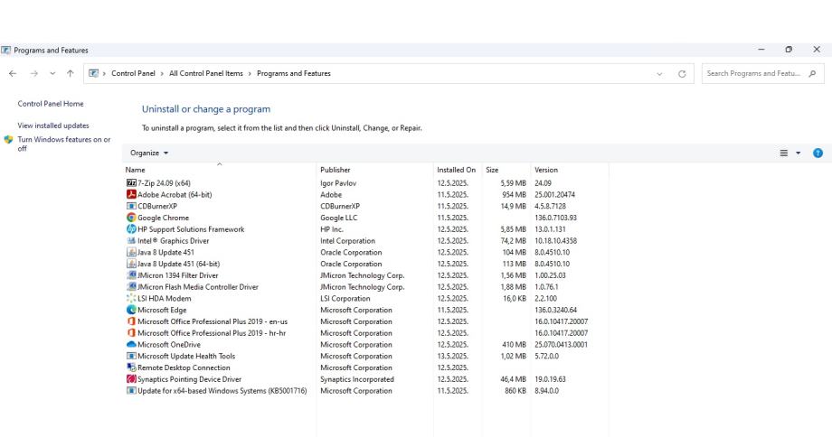 Ostali programi: Google Chrome, 7-zip za komprimirane datoteke, Adobe Reader DC, CDBurnerXP, Java.