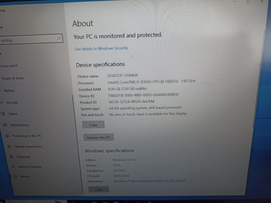 - Procesor: Intel i5 8365U