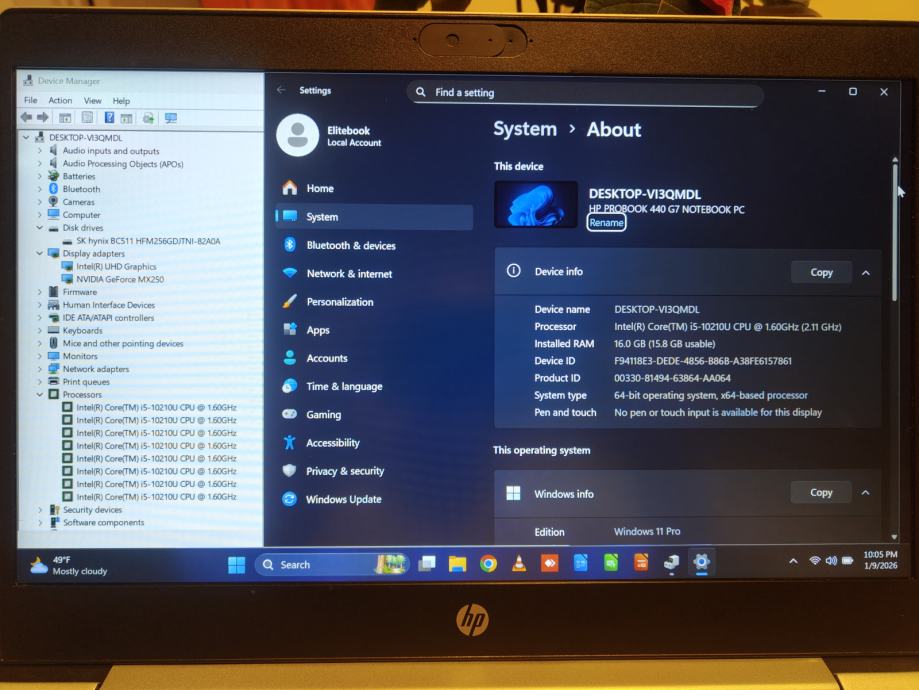 Hp Probook - Intel I5 / 16GB DDR4 / 256GB SSD / Nvidia MX250